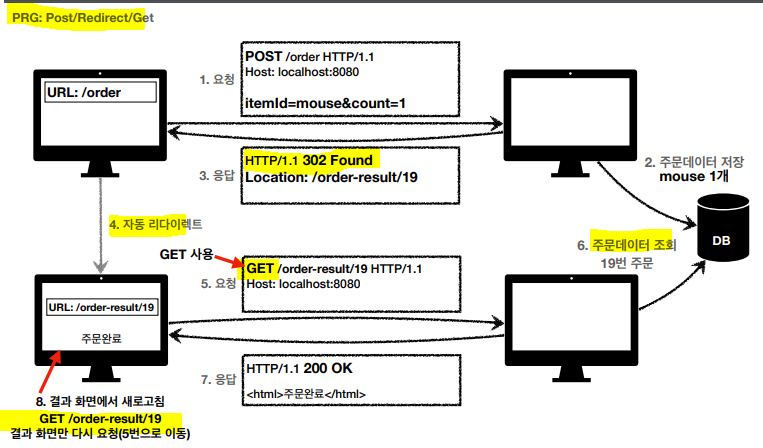 중복 주문 대신에 결과 화면만 GET으로 다시 요청