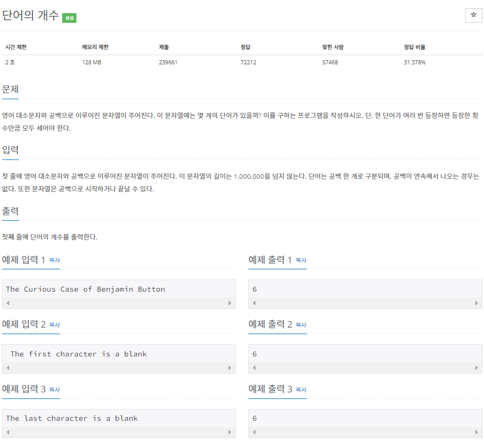 ex ) " " (빈공간) 입력 -> 예제 출력 : 1