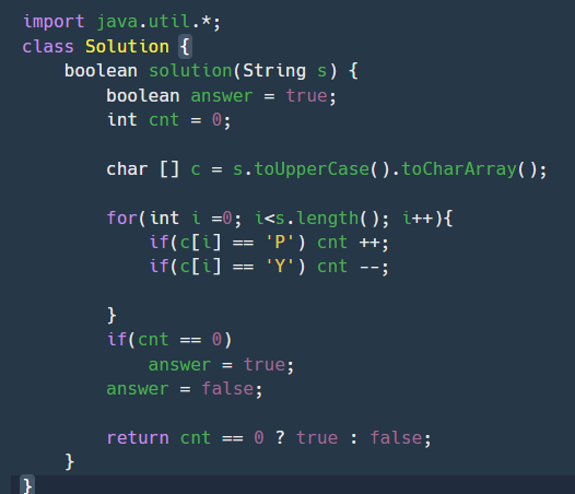 y 와 p 가 대,소문자 상관없이 개수를 세는 문제이므로,
