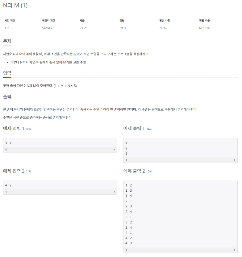 //첫째 줄에 자연수 N과 M이 주어진다. (1 ≤ M ≤ N ≤ 8)