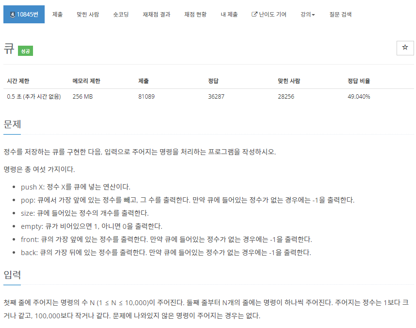 10845번: 큐