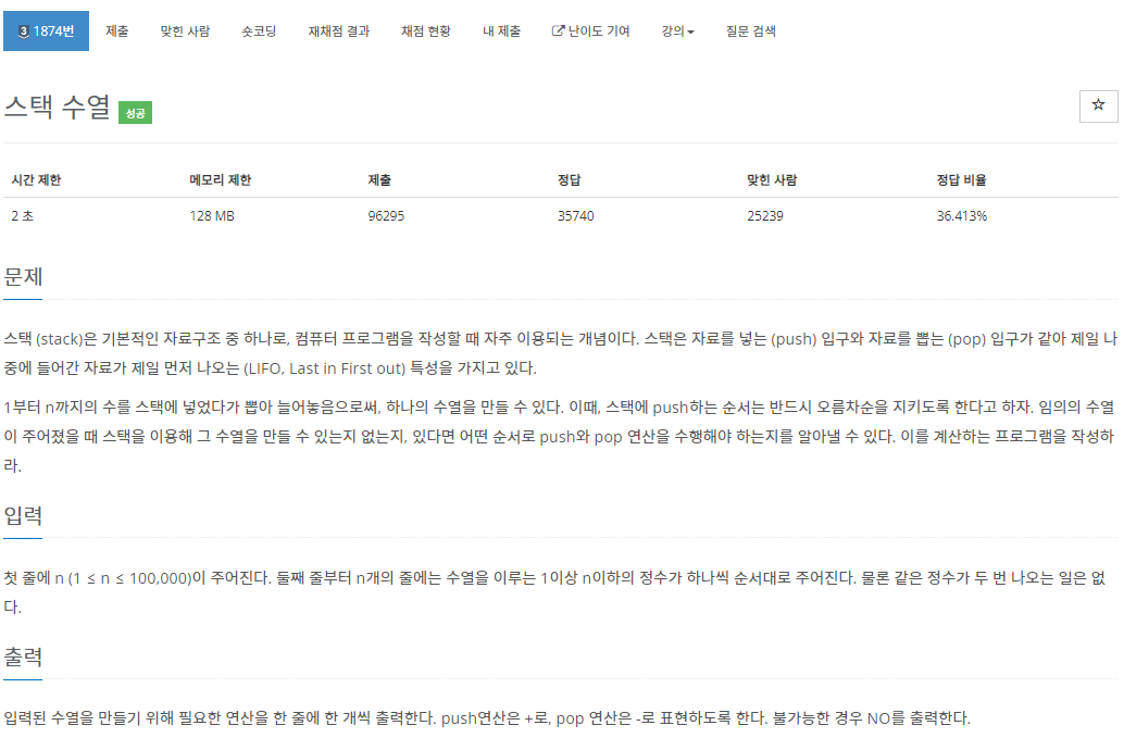 https://www.acmicpc.net/problem/1874