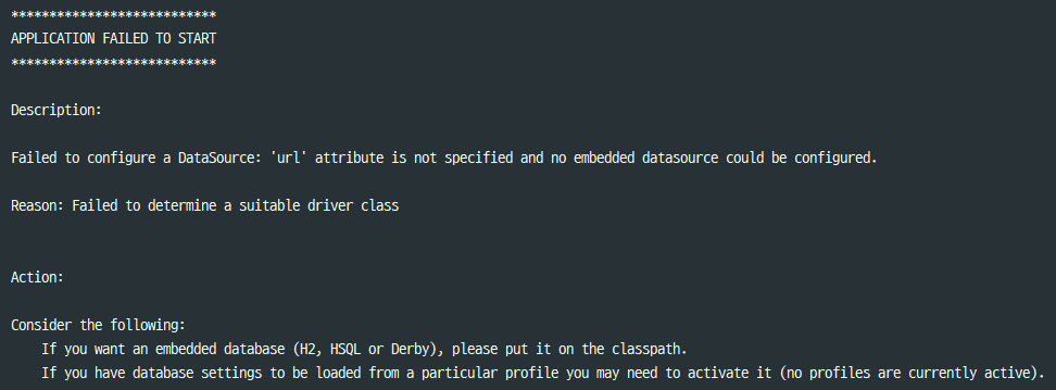 properties 에 MySQL 관련한 내용 추가하지 않아 에러 발생 (실행불가)