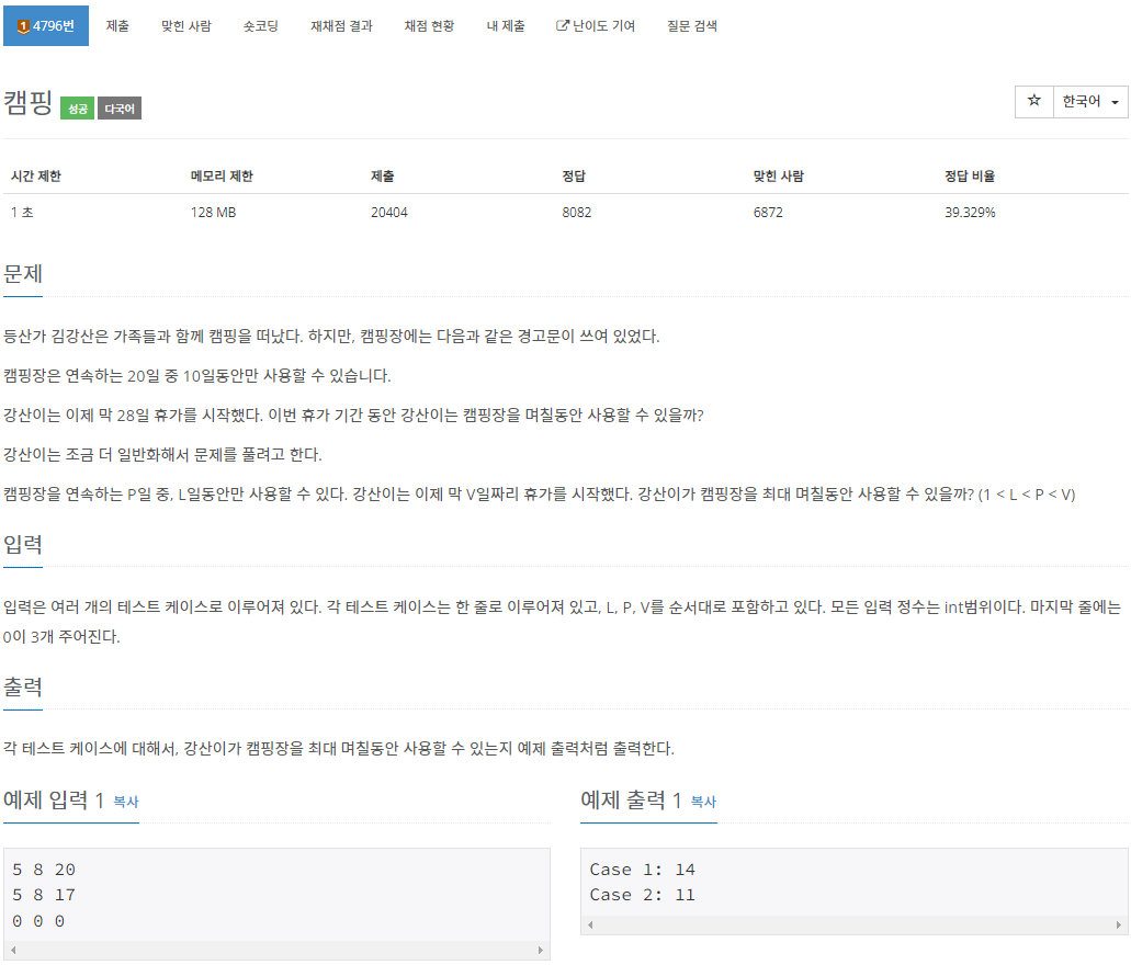 4796번: 캠핑
