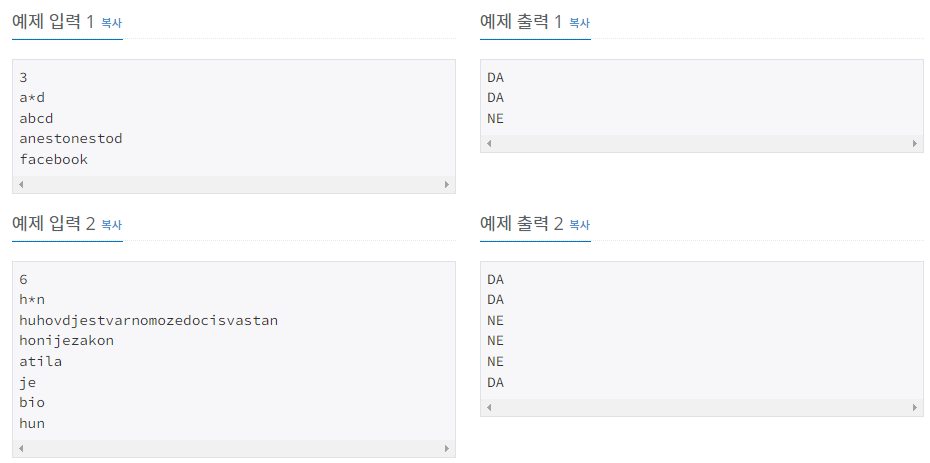 // 예외처리 ( str의 길이가 s 보다 크면 NE 출력 후 break