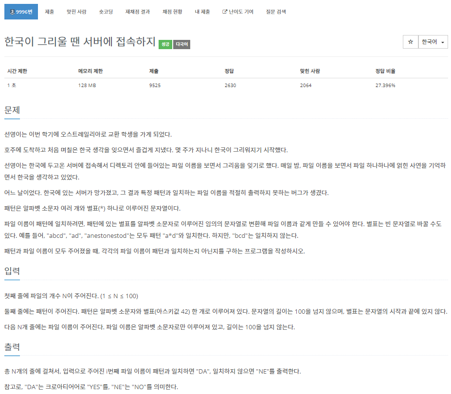 * 시간 제한 메모리 제한 제출 정답 맞힌 사람 정답 비율