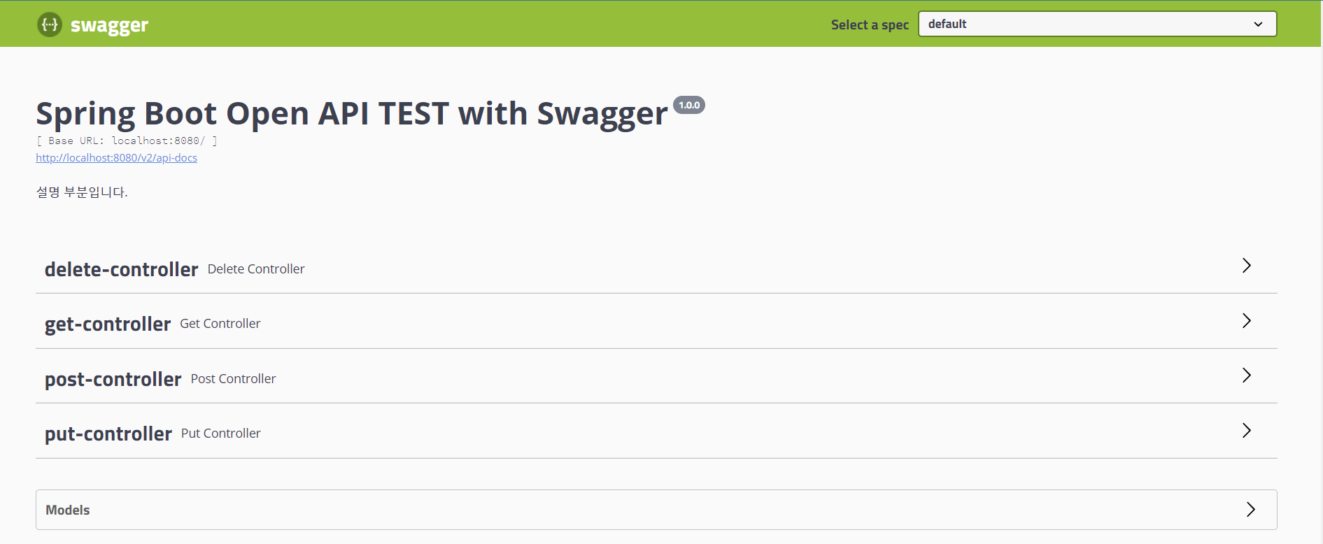 지금까지 작성한 API 컨트롤러에 관한 내용을 볼 수 있다.