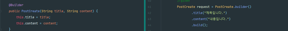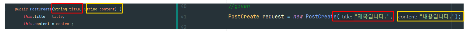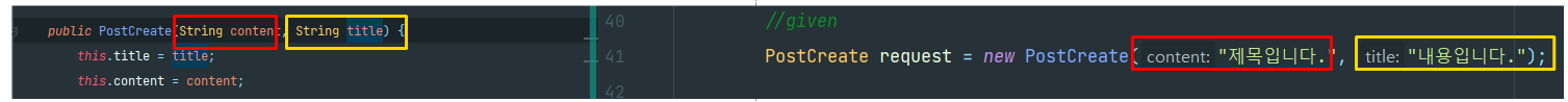 생성자를 사용하는 순서도 title:"제목입니다" , content:"내용입니다" 로 알맞게 들어갔다.
