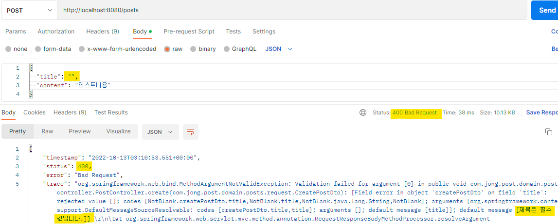 제목이 없으므로, BadRequest가 나온다.