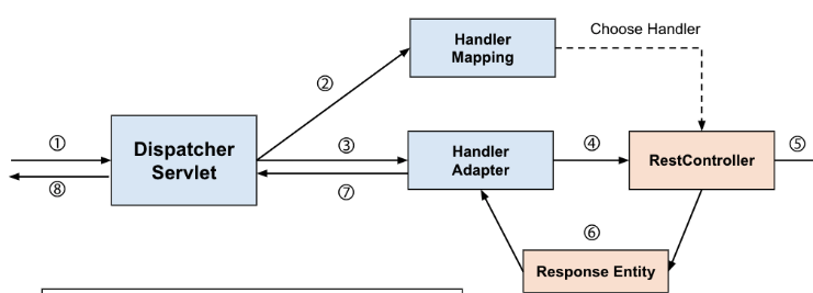 - http 에서 들어온 모든 요청을 가장 앞단에서 받아 적합한 컨트롤러에 위임하는 프론트 컨트롤러이다.