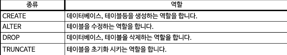 새로운 데이터베이스를 구축하기 위해 스키마를 정의하거나 , 기존 스키마를 삭제 또는 수정하기 위해 사용하는 데이터 언어이다.