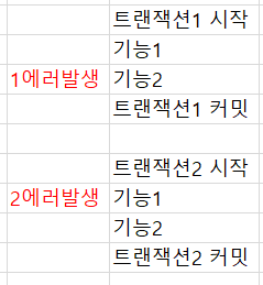 2에러발생 이면 트랜잭션2의 로그내용은 무시하고, 트랜잭션1 에서 저장된 로그 내용을 redo 를 사용해 복구한다.