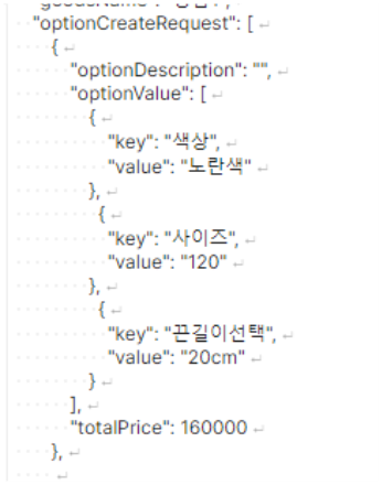 처음에는 옵션값을 List 형태로 추가시켜주어야 하나? 라는 생각에 List<addOption> 를 사용했는데, 잘못된 방법이었다.