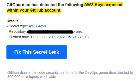 깃허브에서 친절히 메일로 key 가 노출되었다고 보내준다.
