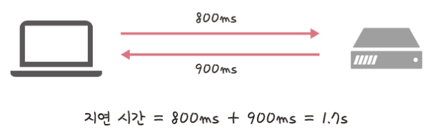 지연시간은 요청이 처리되는 시간을 의미한다. ( 어떤 메시지가 두 장치 사이를 왕복하는데 걸린 시간 )