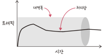 처리량은 링크를 통해 전달되는 단위 시간당 데이터양을 의미한다.