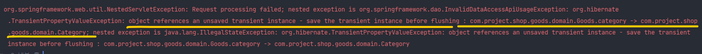 goods Entity 에서 카테고리 연관관계 매핑에 Cascade 를 추가한다.