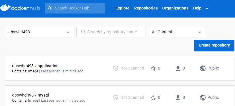 현재 도커허브의 아이디는 dbswhd493 이다.