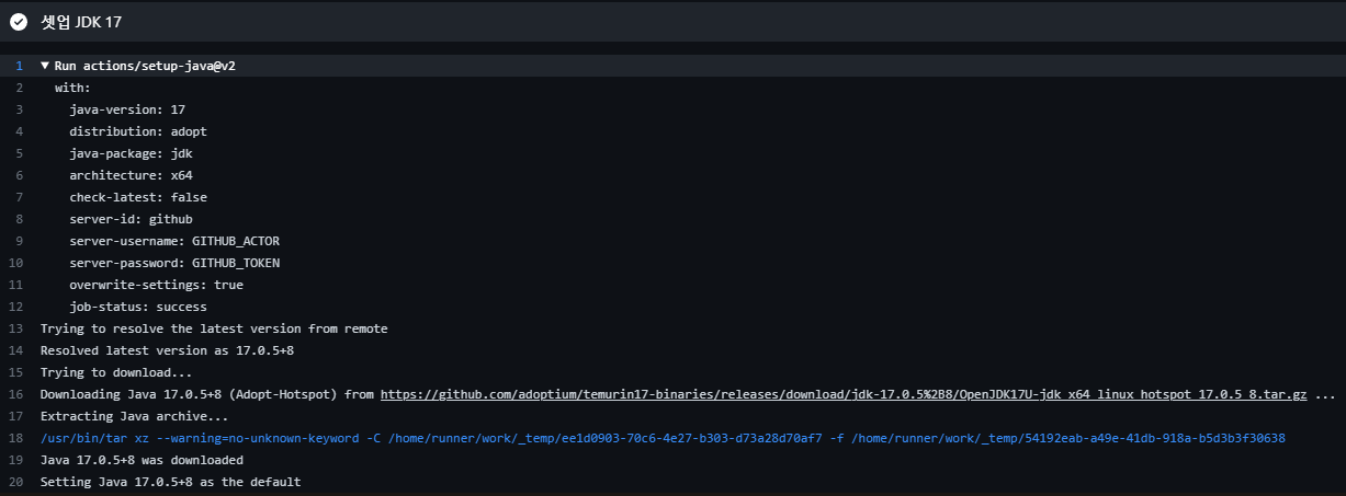 자바 17버전을 사용하고 있기 때문에, 17로 세팅한다.