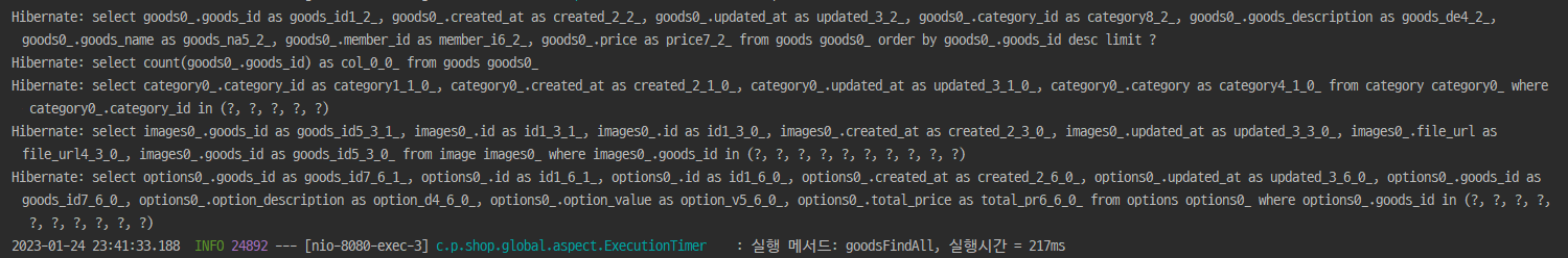 현재 내 프로젝트의 N+1 현상을 보면 아래와 같다.