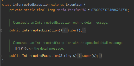 또한, 예외처리(InterruptedException) 을 필수처리 해야합니다.