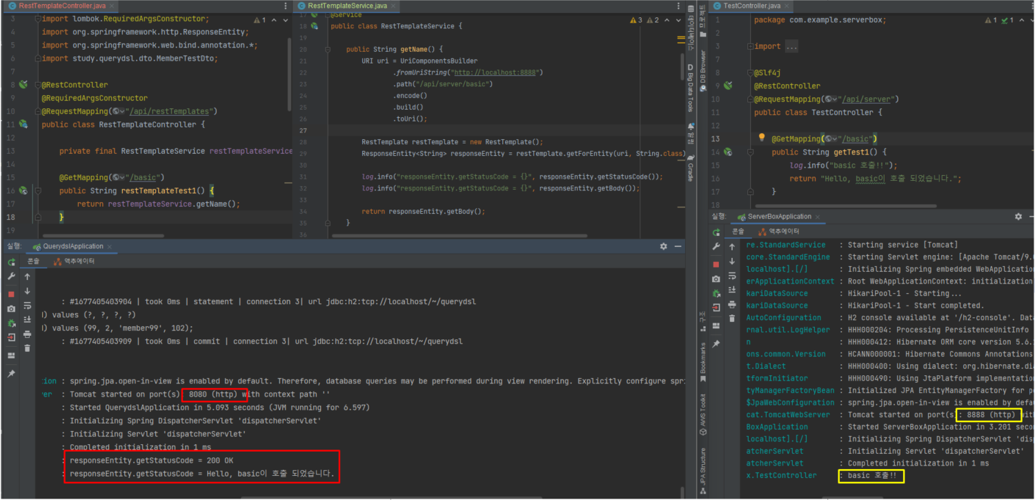 에제를 작성하는 환경은 port가 다른 환경인 2가지 서버가 필요합니다.