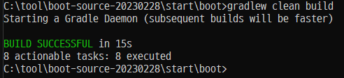 Jar 파일을 확인하기 위해 cmd 창에서 해당 프로젝트 경로로 들어가서 빌드를 합니다.