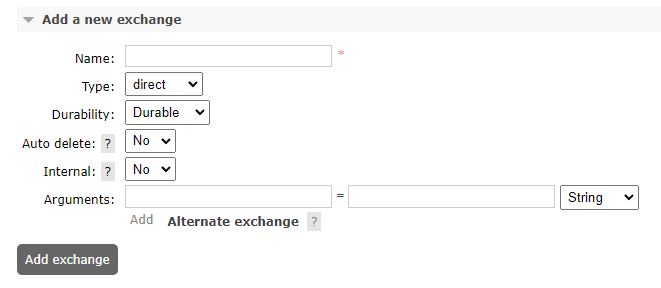 Arguemtns : Exchange에서 처리할 수 없는 메시지를 보낼 대체 Exchange를 지정할 수 있습니다.
