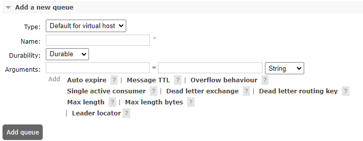 Auto delete : 마지막 Queue 연결이 해제되면 삭제됩니다.
