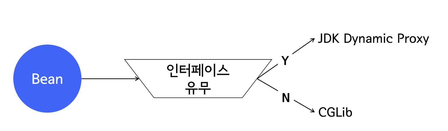 단, 인터페이스가 없는 경우에는 CGLIB 을 사용한다.