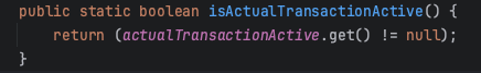 TransactionSynchronizationManager.*isActualTransactionActive*() 메서드를 이용해서 트랜잭션이 적용되는지 확인 할 수 있습니다.