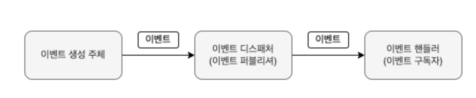 - 이벤트 디스패처 : 이벤트 생성 주체와 이벤트 핸들러를 연결