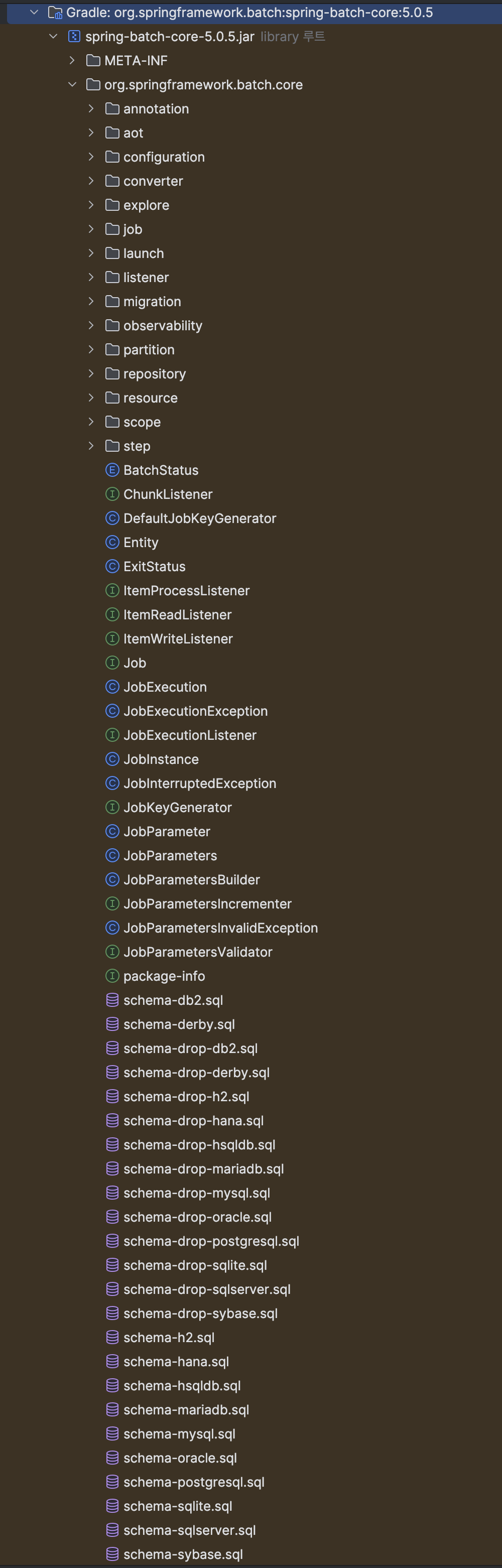 - 스크립트 위치 ( 프로젝트 - 외부 라이브러리에서 batch-core 검색