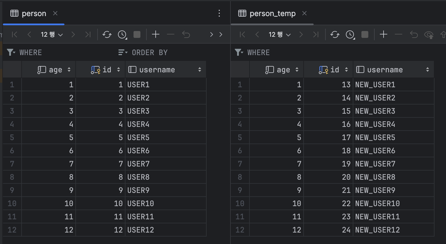 Hibernate: insert into person_temp (age,username) values (?,?)