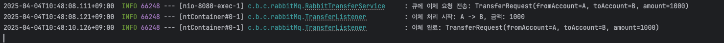 curl -X POST "http://localhost:8080/rabbit/transfer?from=A&to=B&amount=1000"